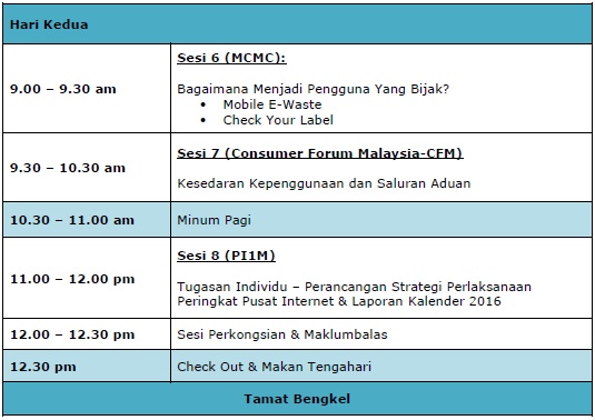 Bengkel Pengukuhan dan Pemantapan Aktiviti Advokasi Bersama Pusat Internet Wilayah Selatan bagi Tahun 2016