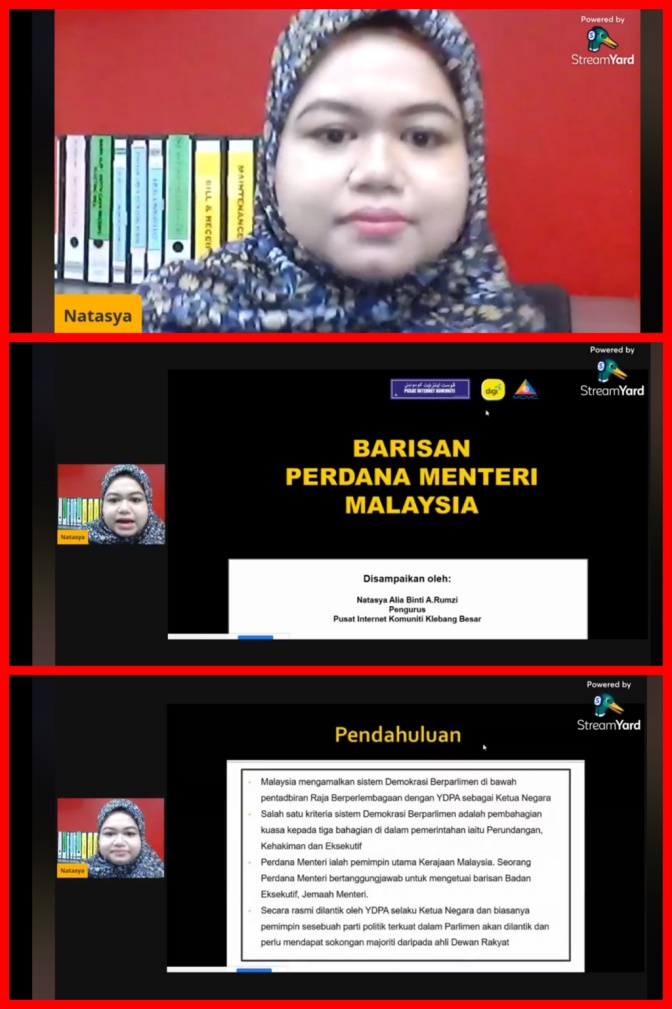 Pusat Internet Komuniti Klebang Besar telah menganjurkan sebuah program bicara bersempena bulan kemerdekaan bertajuk ‘Barisan Perdana Menteri Malaysia’. Salah satu inisiatif program ini diadakan bertujuan untuk memperkenal barisan Perdana Menteri Malaysia bermula dari Tunku Abdul Rahman Putra Al-Haj selaku Perdana Menteri Malaysia yang pertama hingga yang terkini iaitu Dato' Sri Ismail Sabri Bin Yaakob. Program ini juga diadakan bagi menyuntik semangat dalam kalangan masyarakat supaya menghormati dan menghargai jasa pemimpin negara yang telah banyak berkorban dan menabur bakti pada negara.