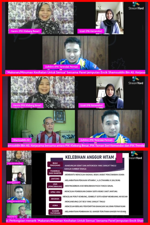 Pusat Internet Komuniti Klebang Besar telah menganjurkan sebuah program bual bicara bertajuk ‘Makanan Dan Minuman Kesihatan’ yang berdurasi selama 1 jam. Panel jemputan bagi program ini merupakan seorang ahli perniagaan dari salah sebuah syarikat terkemuka yang menawarkan produk minuman kesihatan iaitu ‘Berry Mix’. Di samping itu, ‘Berry Mix’ juga selamat untuk diamalkan selain mendapat pengiktirafan halal dari JAKIM serta kelulusan dari ISO.