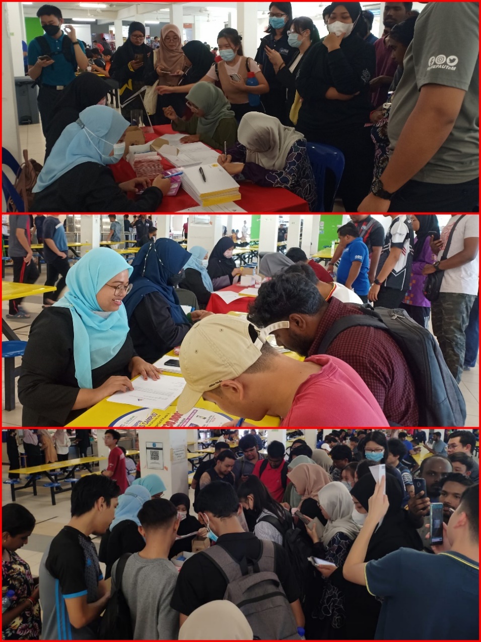 • Terdapat lebih daripada satu kaunter pendaftaran dibuka untuk melancarkan proses pelajar mengisi borang pengesahan penerimaan simkad Pakej Remaja Keluarga Malaysia