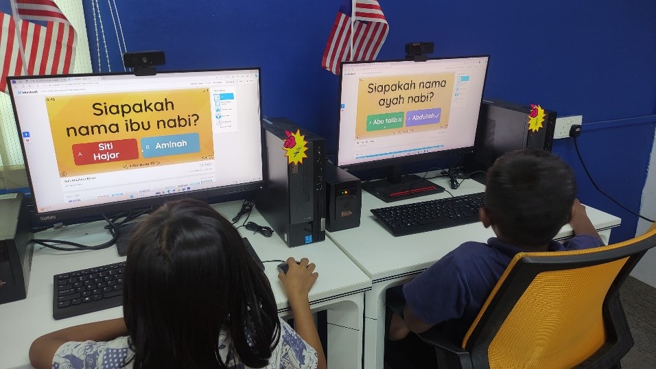 • Peserta diberi penerangan tentang cara permainan, dan membuka laman web Wordwall untuk menjawab soalan.